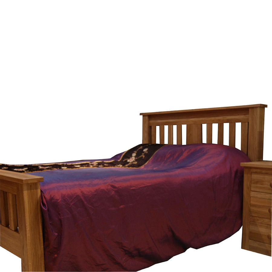 The Bed shown here is the Elements solid oak bed with slatted headboard. This is the high foot end version and each one can be made to any size. The Elements range is handmade to order and is therefore fully customisable. We can make either slatted or paneled design to the headboard and if required the high foot end too. Every bed comes with a solid wood slatted base as standard, and is all assembled by us on delivery.