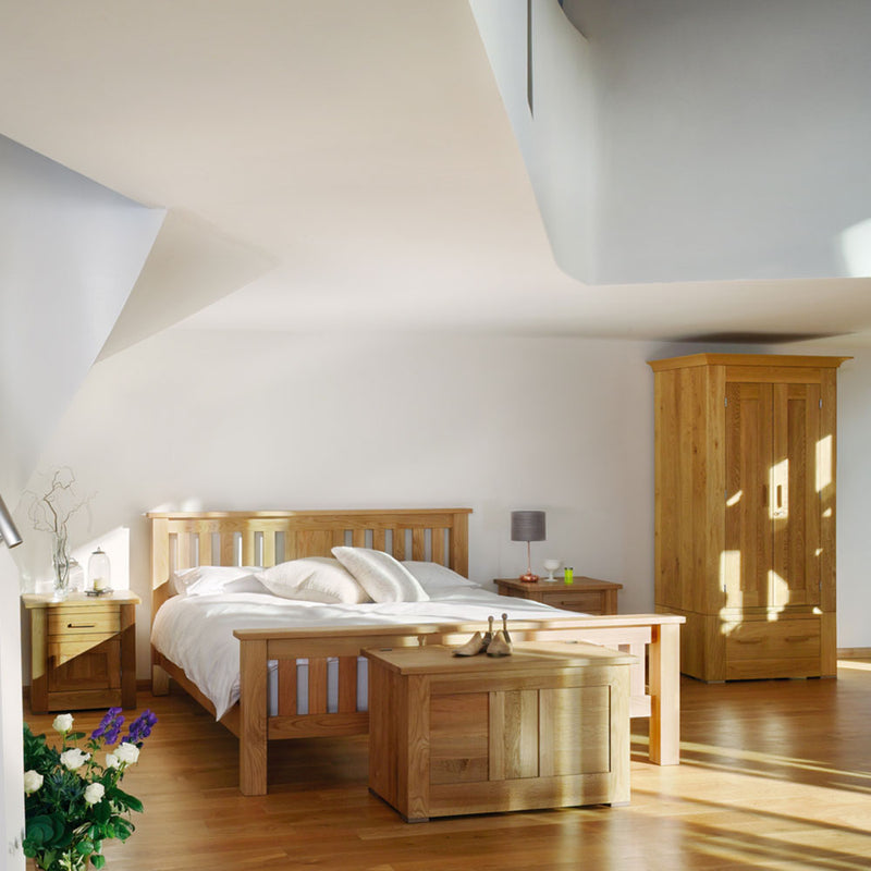 We believe in responsible, ethical furniture. Solid wood furniture should be enjoyed for at least a generation and our solid oak beds are hand made to the highest standard. The Studio range of furniture is fully customisable in size and always made using FSC sustainably sourced timber. Choose the size Studio bed that you need, whether you want a high or low foot end, and customise any measurements. Includes solid wood slatted base.