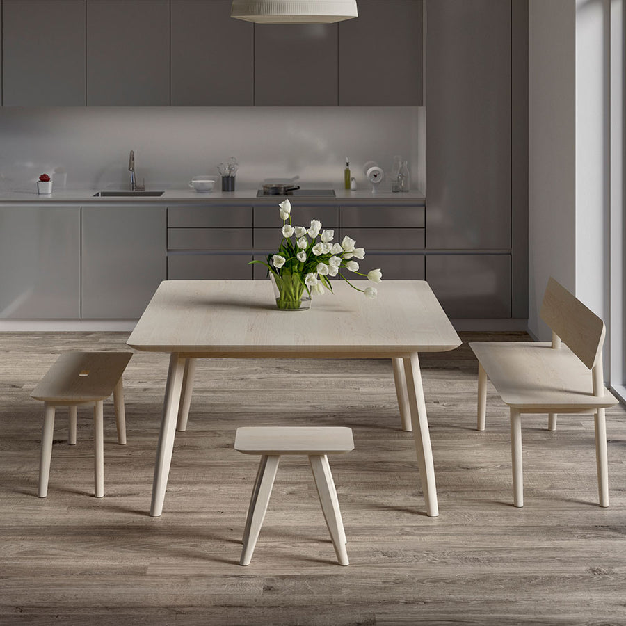 The Atlas collection has a signature curve to the underside of its solid wood tops and a contemporary tapered leg shape. A standard size is shown here but don't forget that we can made to order to accomodate most sizes, and can make from other woods too. See also the Atlas benches for more bespoke seating.