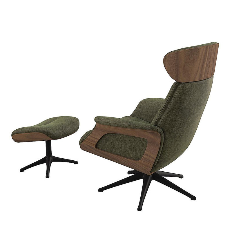 Customise the look: The shell of the chair is available in Walnut or Oak, your seat itself is finished with your colour choice from a large bank of superior fabrics. The elegant aluminum legs are available in black or polished aluminum. Pair with the optional stool for a super comfortable seat.