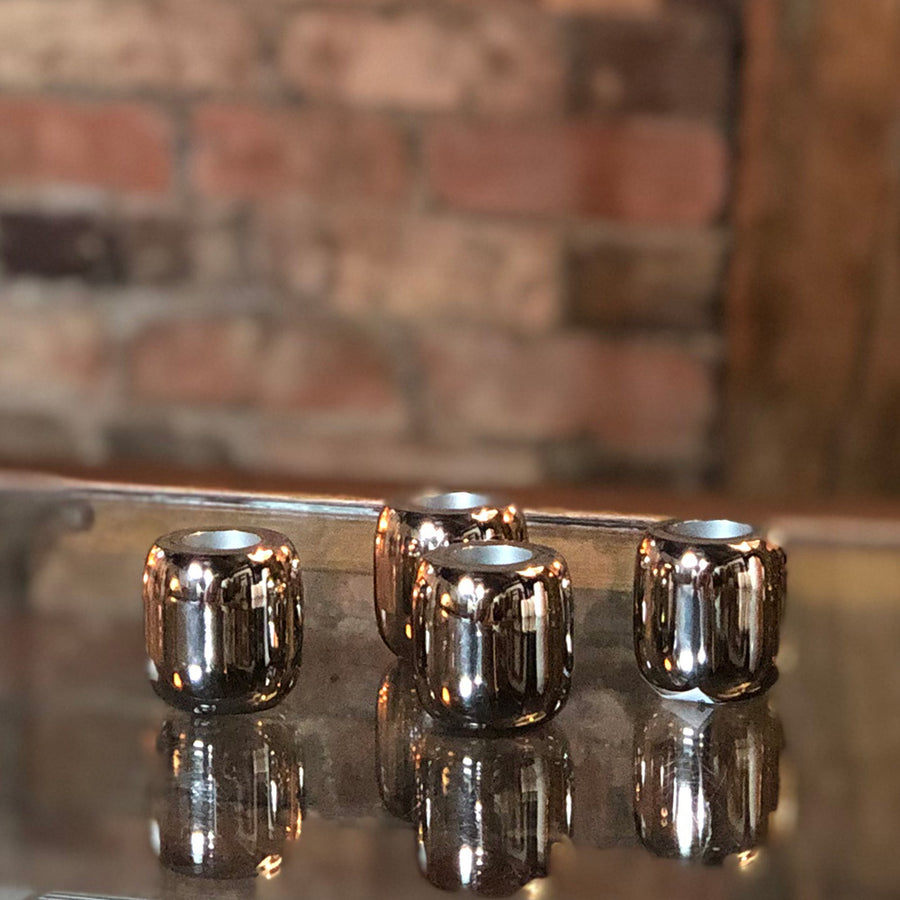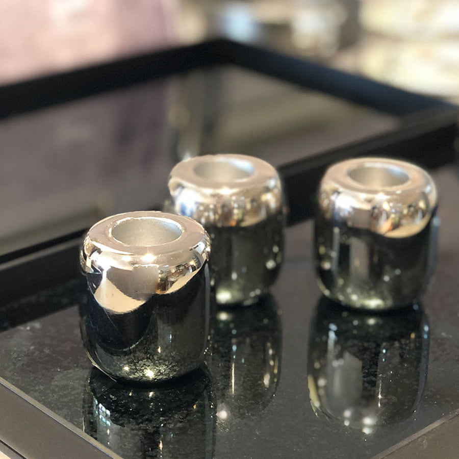 The elegant barrel shaped candlesticks are made from smooth shiny nickel polished high grade aluminium, for the dinner or tapered candles of your choice. Each candle holder has a protective flocked base. Sold individually; use solo, paired or as a collection for an elegant simple look.