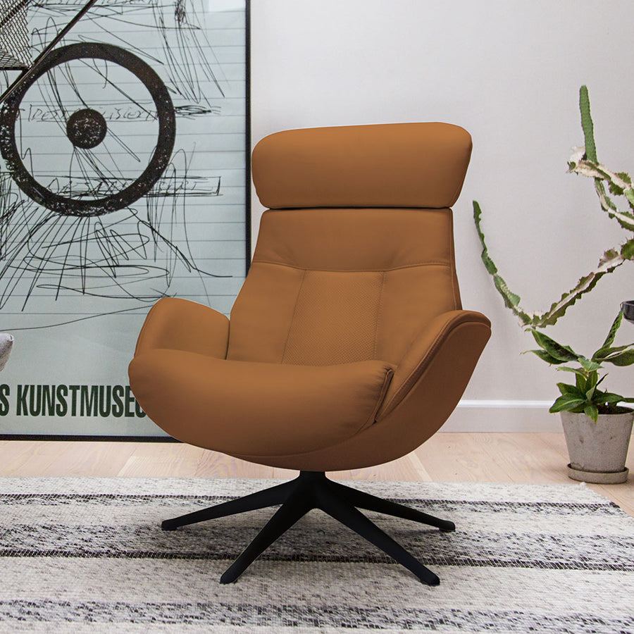 An adjustable headrest offers tailored support for reading, watching or relaxing. Fully upholstered with a sculpted shell and refined aluminum legs available in black, polished or wood finishes, the Elegant brings an easy sense of balance and comfort to any space.