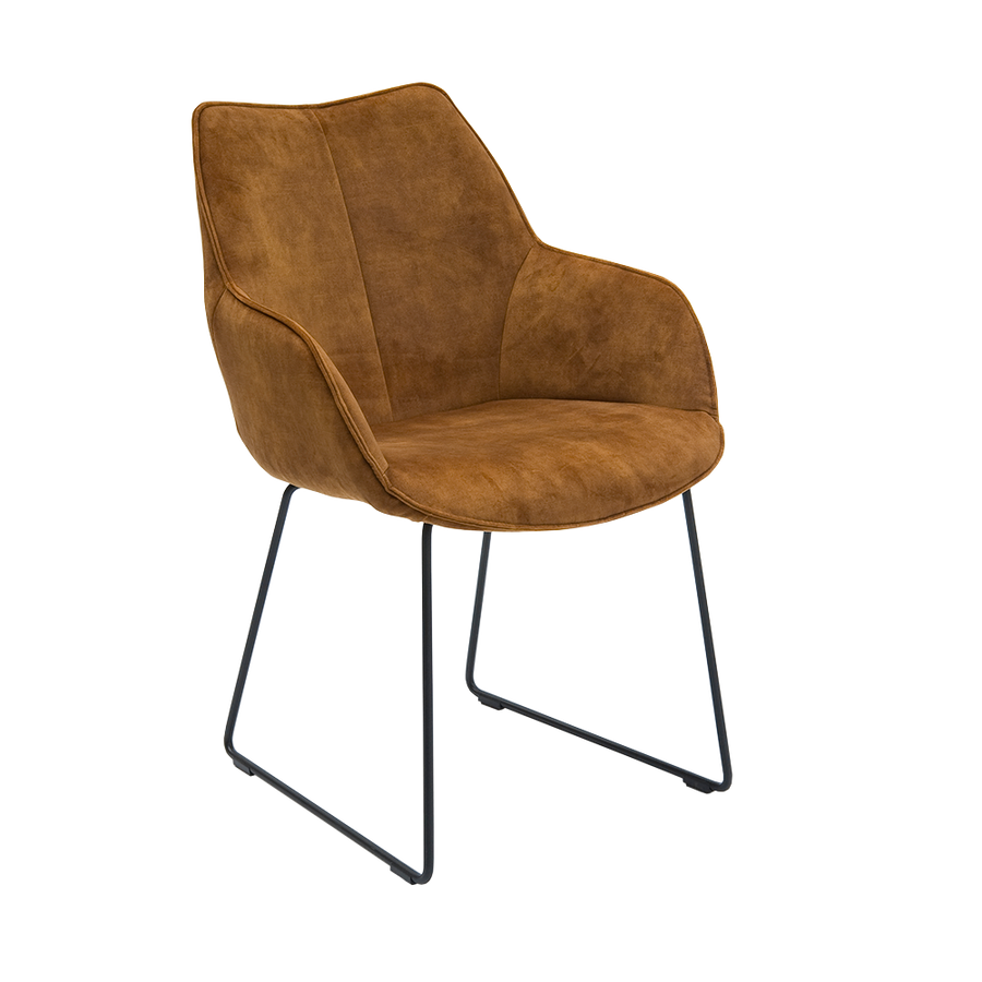 All of our upholstered dining chairs are chosen for their exceptional comfort and design. The Nevada chair with arms is part of our designer chair collection, and has a curvy contemporary shape. It's a great addition to your family table and each chair is made to order.