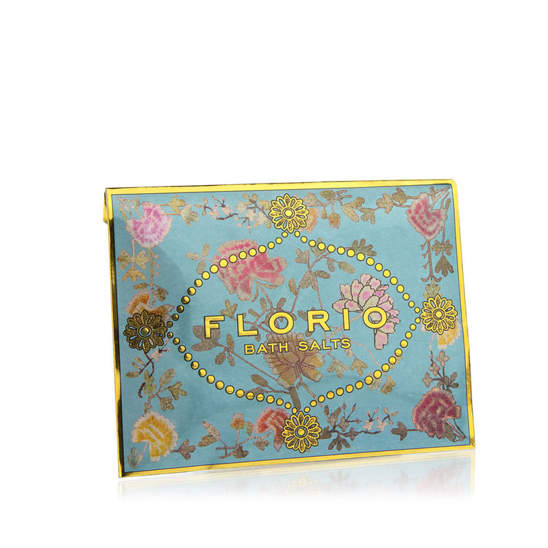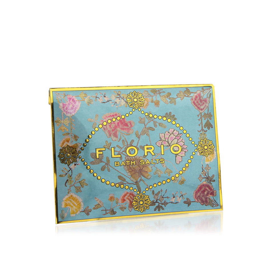 A travel-sized envelope of 75g of Florio scented bath salts. A modern revival of an ancient tradition, the salts dissolve in the bath making the water incredibly soft. Ideal for soothing tender skin and tired limbs.