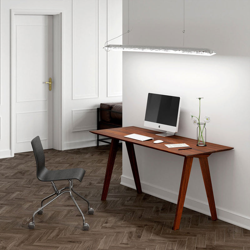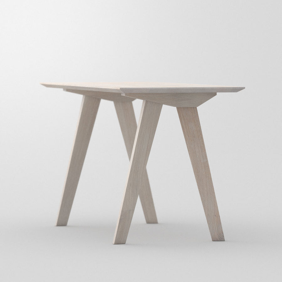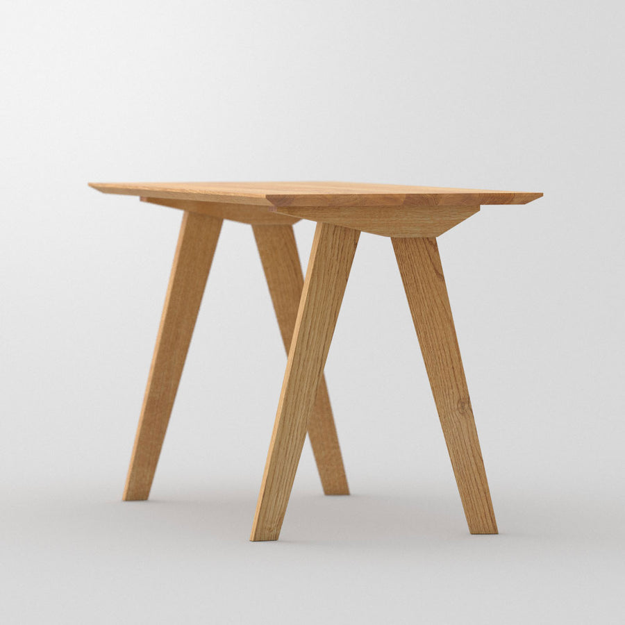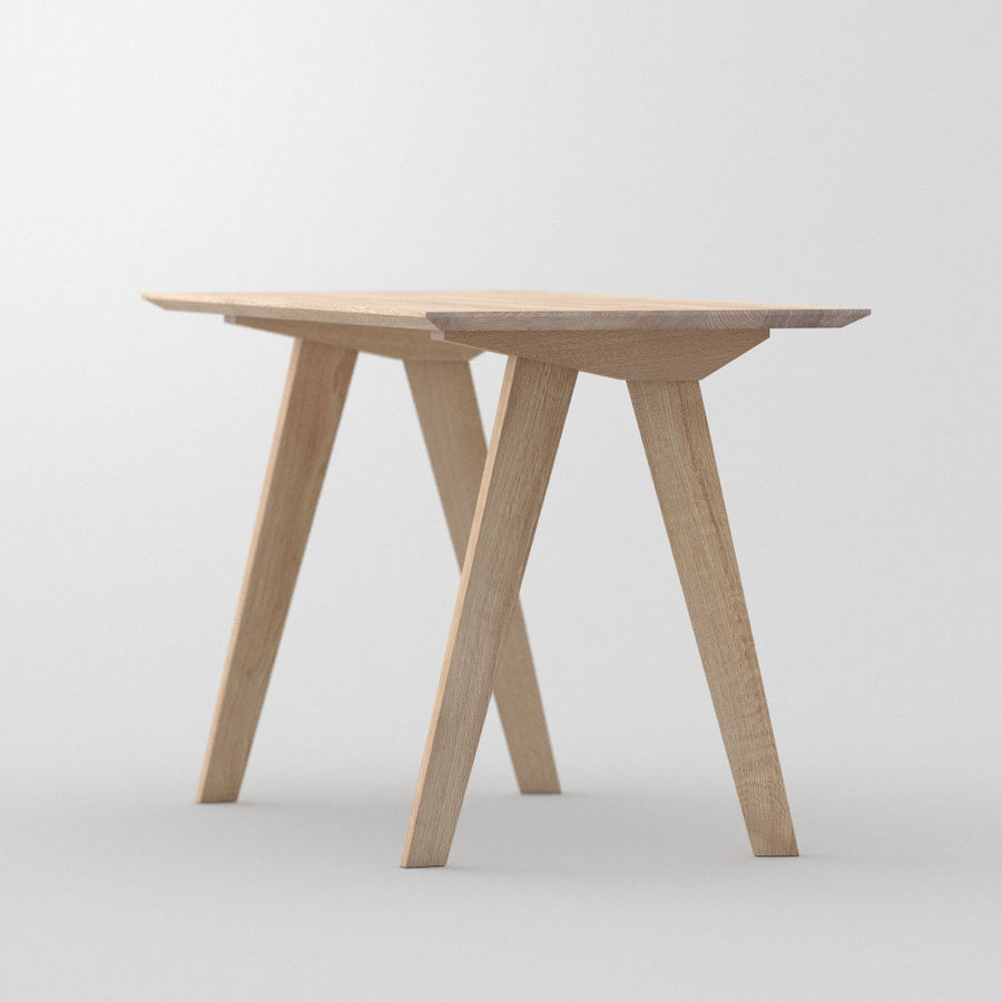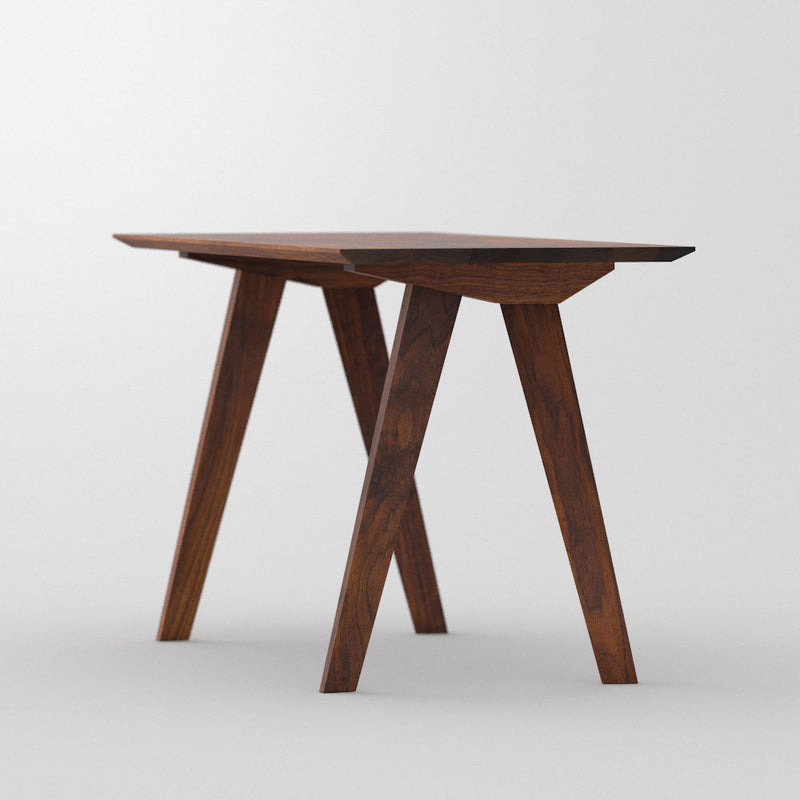 The Citie solid wood desk is simple and elegant in design. It features tapered angled triangular legs and a tapered tabletop creating a stunning contemporary look. It can be custom made to almost any length and most widths from Oak, Walnut, Cherry, Beech or Ash.