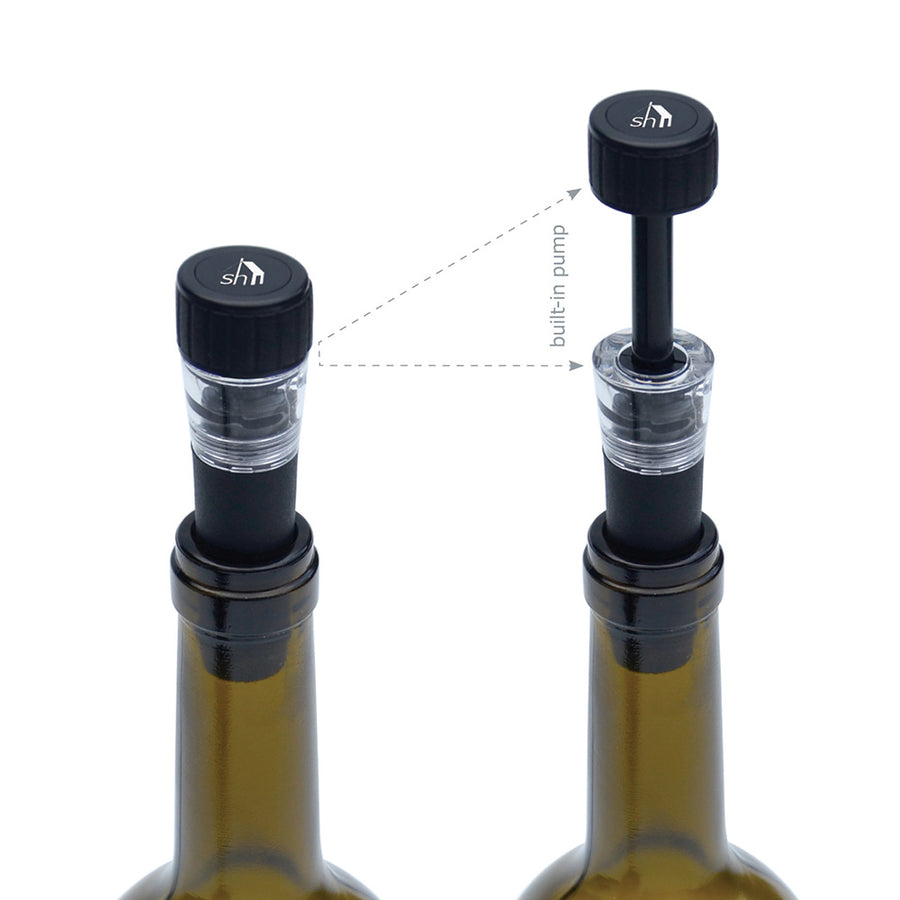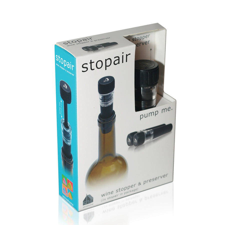 Introducing Stopair - the all-in-one bottle stopper and vacuum preserver by Soiree Home. This clever, modern and convenient gadget, gently removes excess air from your bottle, to preserve wine that can often spoil when exposed to oxygen. Simply insert the Stopair into your bottle after serving and pump 10-15 times to remove excess air. The Stopair also doubles as a bottle stopper post pumping... A brilliant 2-in-1 gadget every wine lover must own! Could be used to extend the life of your wine, port, spirits, vinegars or oils.