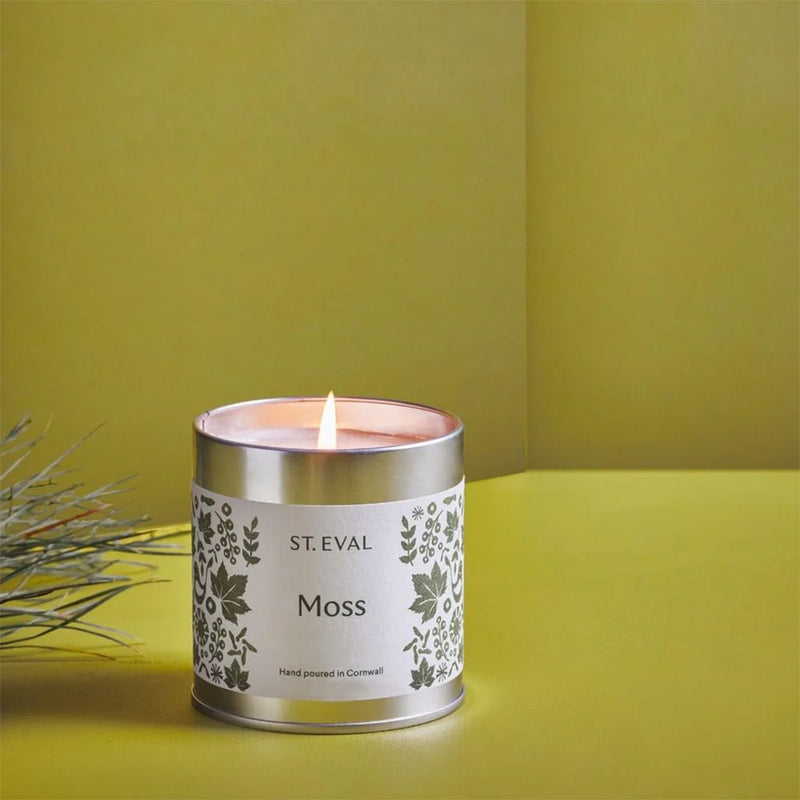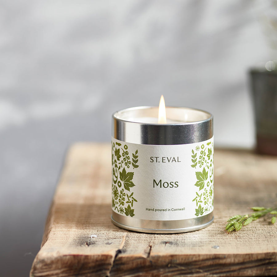 'Moss' is a fresh, crisp and earthy scent with deep green woody notes. Inspired by the rolling countryside of its Cornish birthplace, this hand poured candle in a tin has a unique blend of mineral and vegetable white wax plus fragrance to ensure a consistent aroma, superior burn quality and great scent throw. Enjoy a burn time of up to 45 hours.