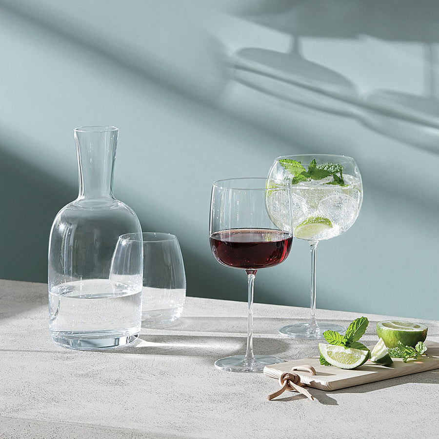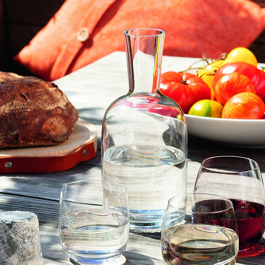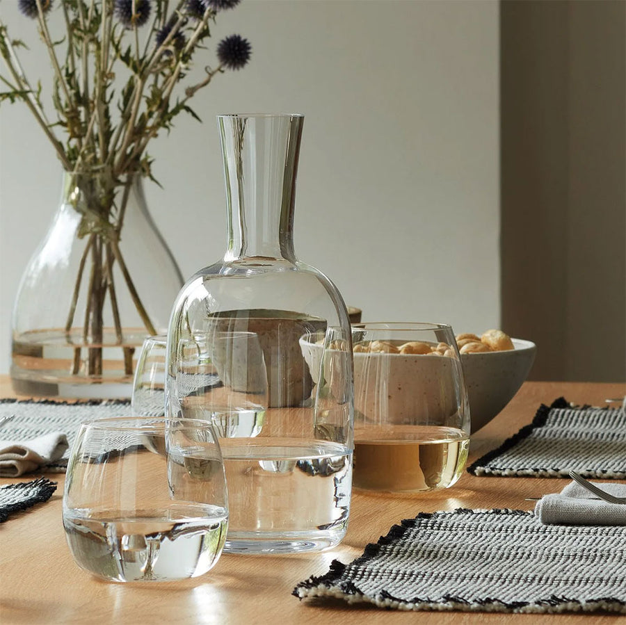 Perfect for gifting or simply enjoying at home, this is a  mouth-blown carafe with curved body and flared neck, perfect for table water. Mouth blown by skilled glassblowers to create a simple contemporary form.