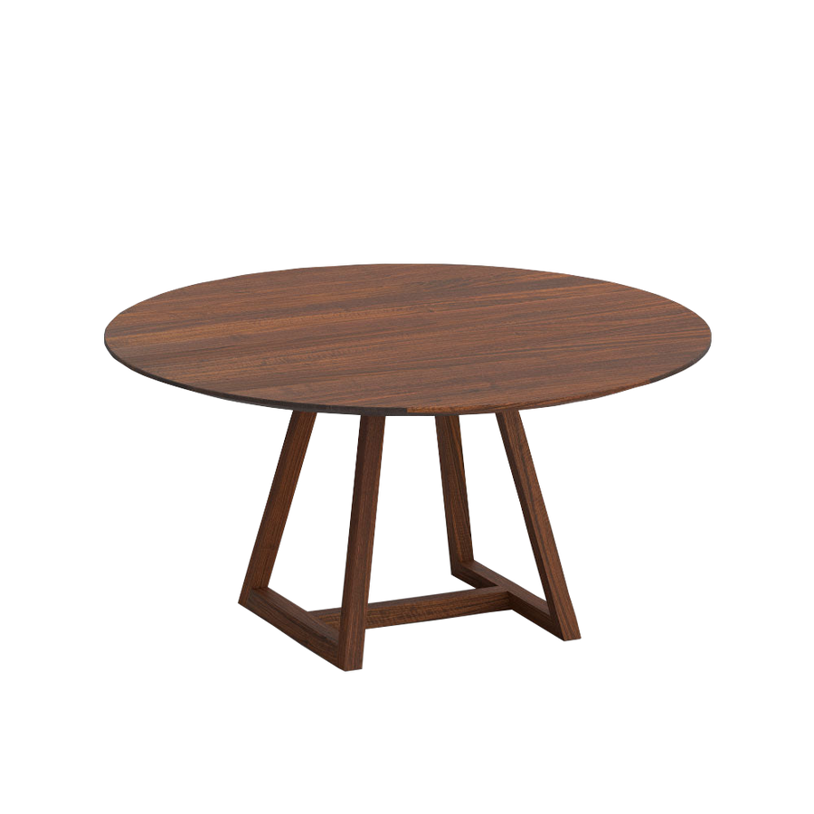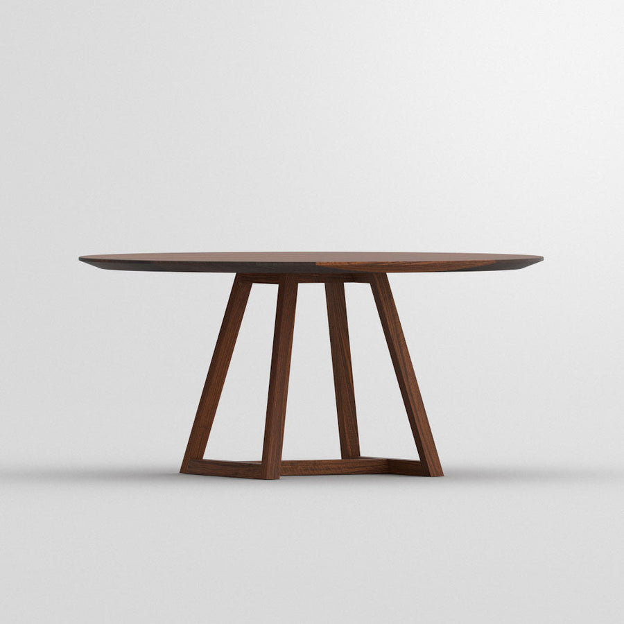 A well balanced round contemporary dining table made from solid sustainable walnut. Margot features a well balanced and creatively styled under frame which is unique to this table. The table top can be slanted on the underside which makes the 4cm top almost float in its design.