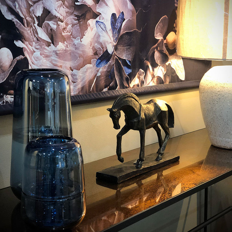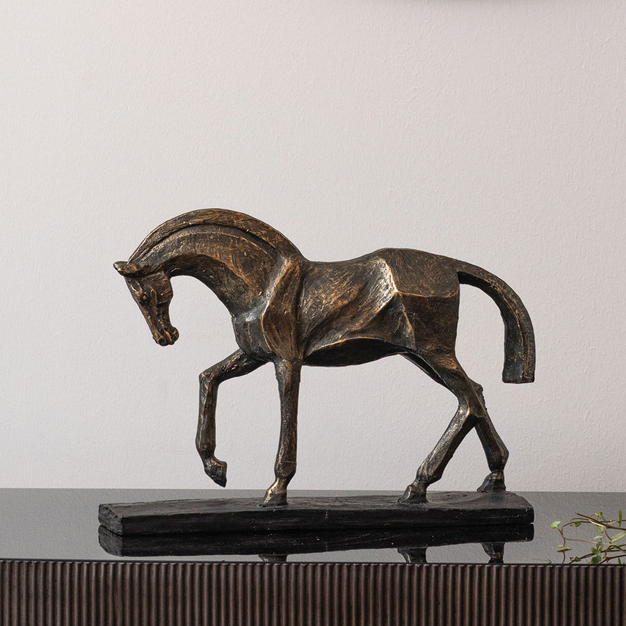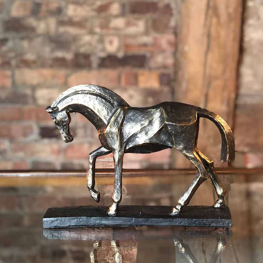 A classic addition to our collection of sculptures, this bronze coloured horse sculpture on a black base is Cubist inspired, its exposed lines are finished to highlight the lines of muscle. A must-have piece for art and horse lovers, this is the perfect addition to your living space. Crafted from resin and hand-finished in a classic bronze effect.