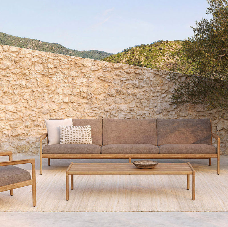 A rectangle accent cushion made to be used outside to create an inviting garden setting, this collection of textiles offers all the beautiful aesthetics you'd expect from Ethnicraft, for a cohesive feel to your indoor and outdoor areas. Ethnicraft outdoor fabrics are all-weather, UV resistant, hypoallergenic and maintenance-friendly and all cushions are inserted with a long lasting, all-weather quick-dry foam. This dries quickly after exposure to moisture and humidity, which can penetrate even a water-repellent outer shell over time.
