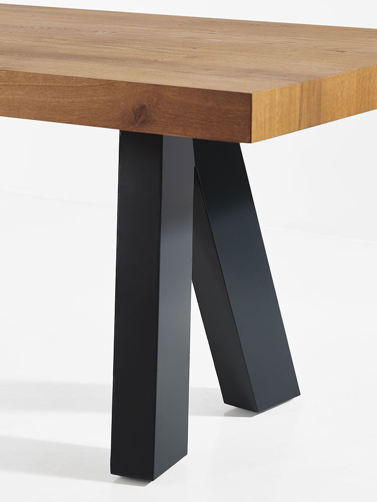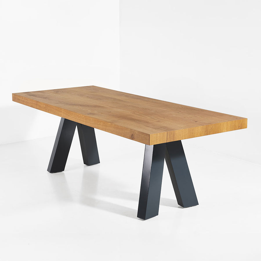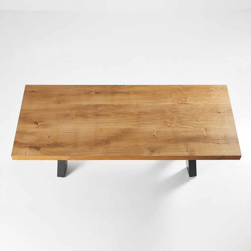 A fantastic industrial style solid oak barn table with a natural oil finish. Hand made to order from 100% natural sustainable European oak. This majestic dining table can be made with a choice of industrial leg options. Just look at the signature 8cm thick top - built to last the ages! All leg options have a matching bench that can also be made to custom lengths. Widths available from 80cm up to 130cm, and lengths to 355cm and more.... See more of the range - The Sopwell Oak Collection