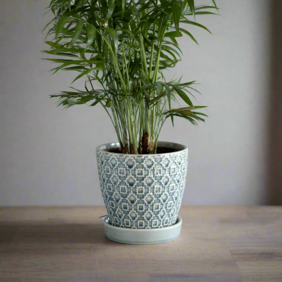 This blue colour retro-inspired plant pot adds a soft, stylish pop of color to any space. Perfect for displaying your favourite plants on a shelving unit, windowsill, or console table.
