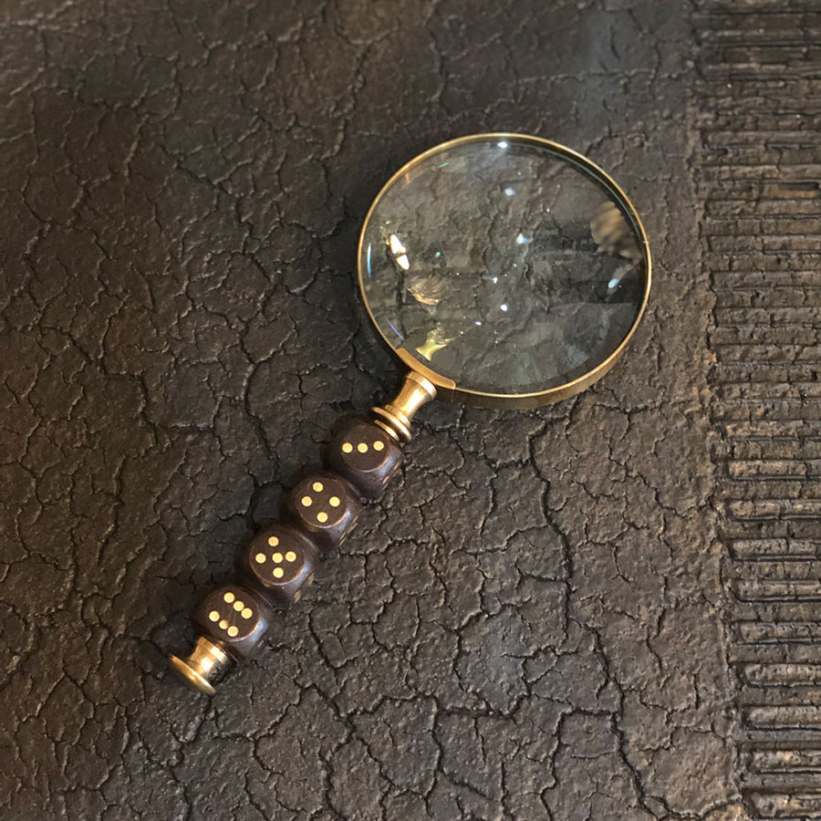 A fabulous new addition to our collection of vintage style pieces, a useful magnifier with a handle made from wooden die. A practical and smart gift.
