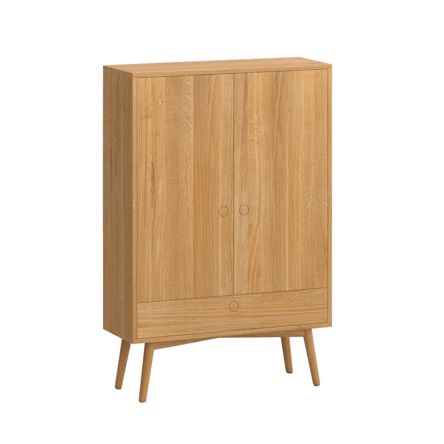 The Amber cupboards and sideboards feature push click opening to the drawer and doors with full grain matching and features two solid wood internal shelves - a simple contemporary cabinet with unique eye catching retro appeal. Our Amber storage furniture is made to the highest quality. Each one can be made in Oak, Walnut or Ash woods and the whole collection can be made to your size and layout specifications.