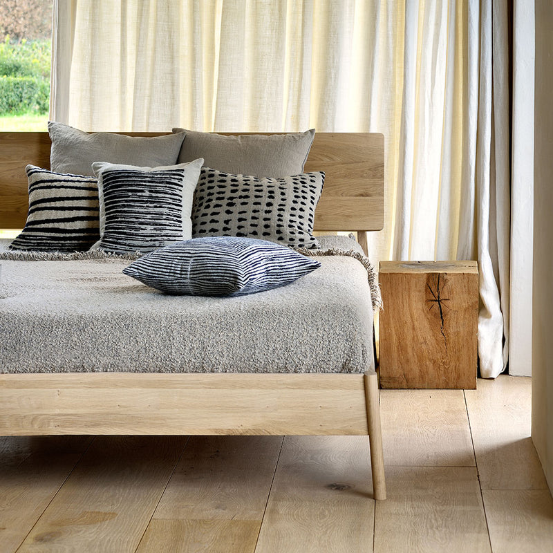 Solid 100% European oak in a contemporary light oil finish, the Athens Bed is the perfect centrepiece for the minimalist modern bedroom. Simple and elegant lines, sturdy with a light appearance with a gently shaped headboard. Solid wood slatted base comes as standard or upgrade to a luxury sprung slatted base.
