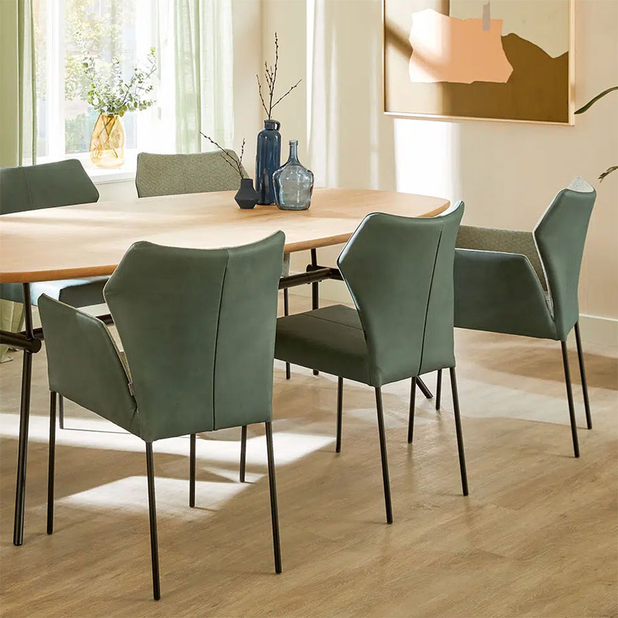 All of our upholstered dining chairs are chosen for their exceptional comfort and design. The Ford Chair is part of our newest chair collection, and makes for a very comfortable dining experience. Use as a full set or as a end chair carver with its armless companion chair Floyd.