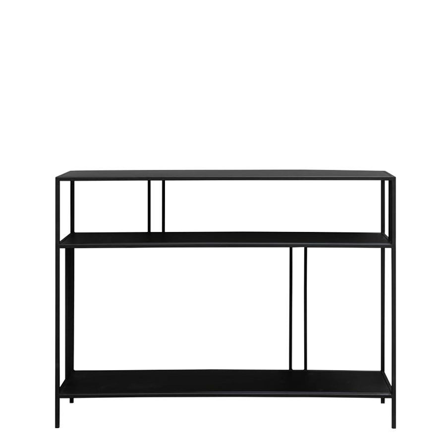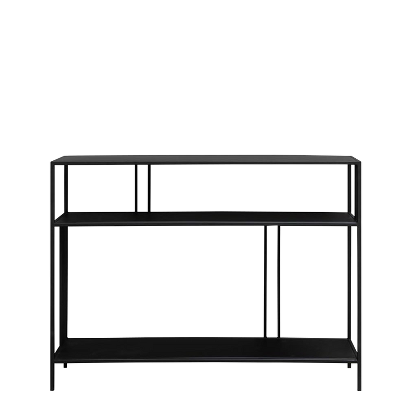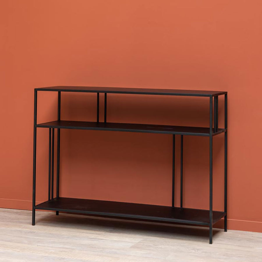Simple graphic lines on this all black console table, with three useful levels for display or storage. A slim depth of 32cm which is great for narrow hallways.