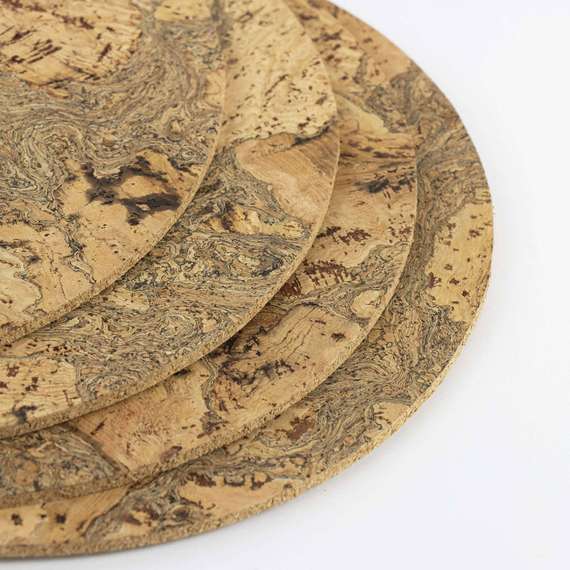 A must have for protecting surfaces, and a beautiful yet eco friendly option. Set of 4 simple round cork table place mats, from the Cork Oak tree.