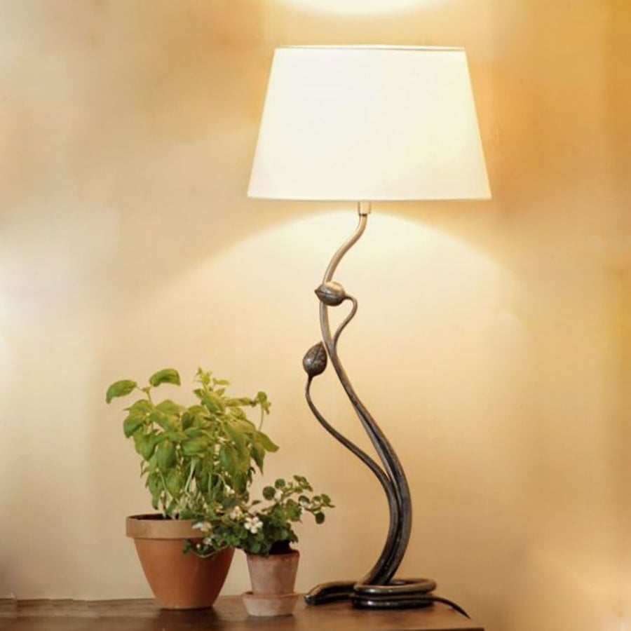 This hand forged Tulip Lamp is lovingly handmade by our blacksmith and comes complete with an off white shade, which is easy to change should you wish.